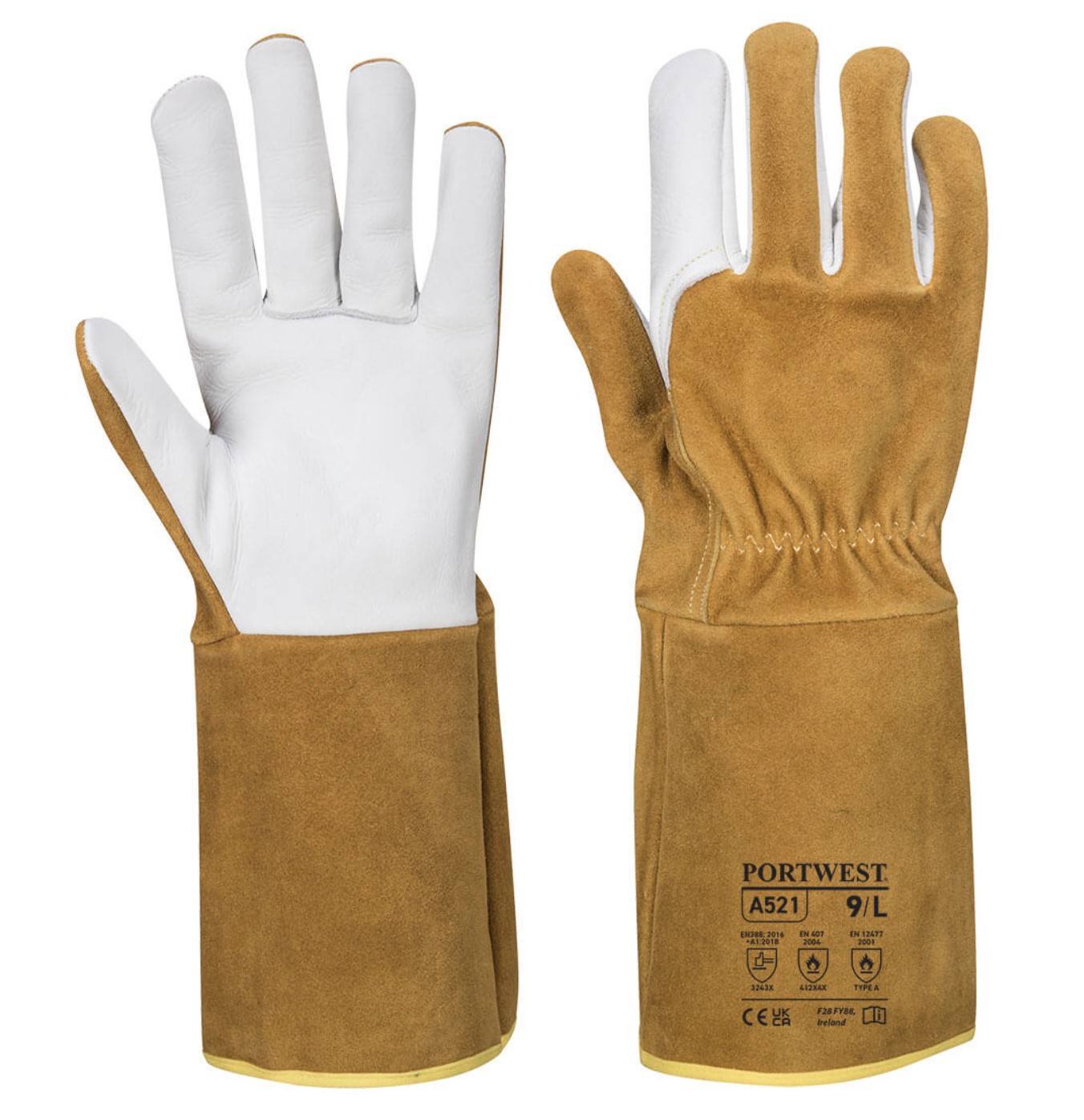 TIG Ultra hitsauskäsineessä on vuohen nahka kämmen sekä haljasnahka kämmenselkä. Palosuojattu ja aramidiompelein vahvistettu malli on suunniteltu erityisesti ammattikäyttöön TIG-hitsaajalle.