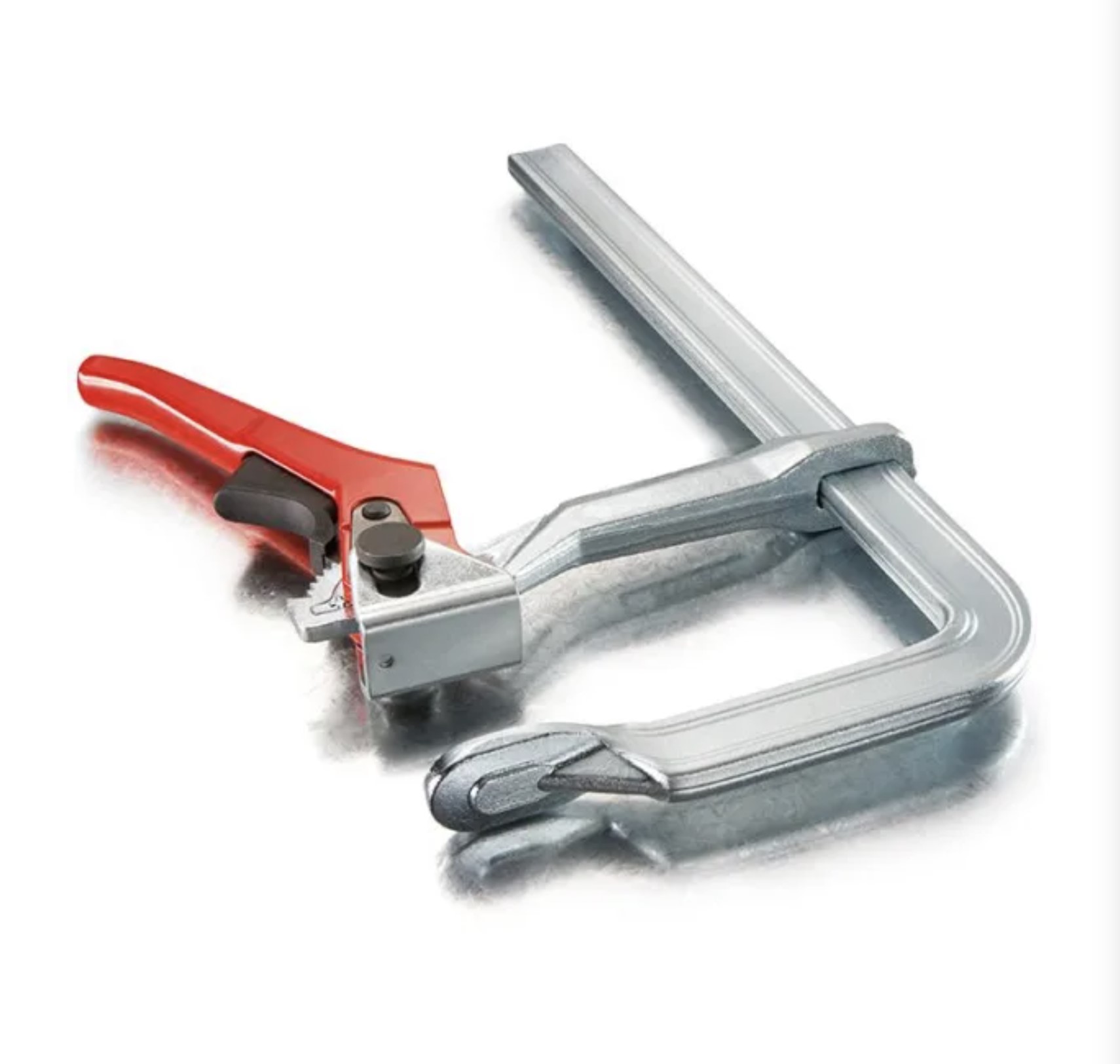 Bessey GH40 -teräspuristin, aukkoväli 400 mm ja syvyys 120 mm. Teräspuristimessa on pikalukitus ja se on jopa 5 kertaa nopeampi kuin perinteiset puristimet, puristusvoima 8000 N.