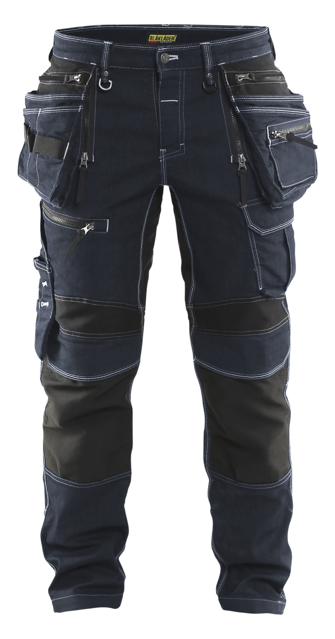 Kestävät riipputaskuhousut CORDURA®Denim stretch kankaalla sekä stretch-kangasosioilla haaroissa ja pohkeissa erinomaista liikkuvuutta varten. Perinteinen haara ja istuvuus lantiolta, kapenevat lahkeet. CORDURA®-stretch polvisuojataskut, joihin polvisuojat asetetaan yläpuolelta.