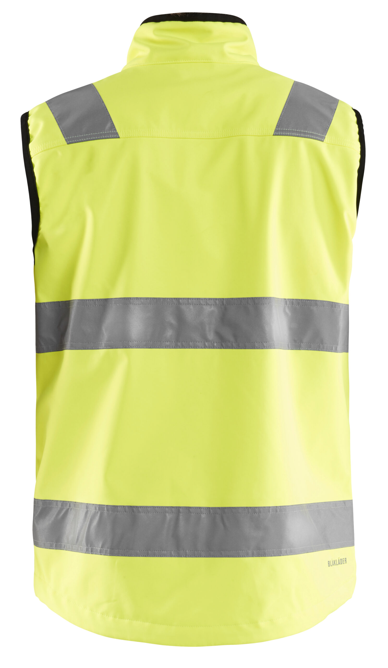 Softshell liivi pehmeästä ja joustavasta materiaalista, joka on hengittävä, tuulen- ja vedenpitävä. Pidennetty selkäosa ja säädettävä alareuna. Pehmeä fleecevuorattu kaulus lisää mukavuutta. Sertifioitu EN ISO 20471 luokka 2.