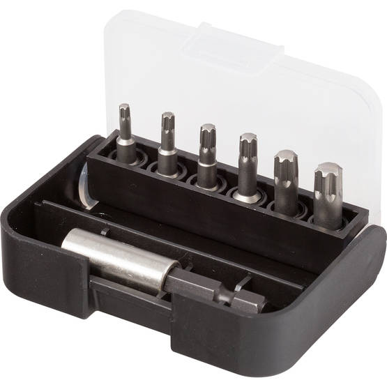 COBIT ruuvauskärkisarja TORX T-RIP TORSION, 7-osainen. Cobitin T-Rip Torx- ruuvauskärjessä on täysin uudenlainen muotoilu, jonka ansiosta kärki pysyy tiukasti ruuvissa kiinni. Ne ovat valmistettu takomalla ja ne kestävät erittäin kovaa vääntöä. Täysin lukittuvan otteen myötä kärjet ovat pitkäikäisiä. Sisältää: 25mm Torx T-Rip Torsion kärjet: T-Rip 10, T-Rip 15, T-Rip 20, T-Rip 25, T-Rip 30, T-Rip 40; magneetti-istukka 50mm.