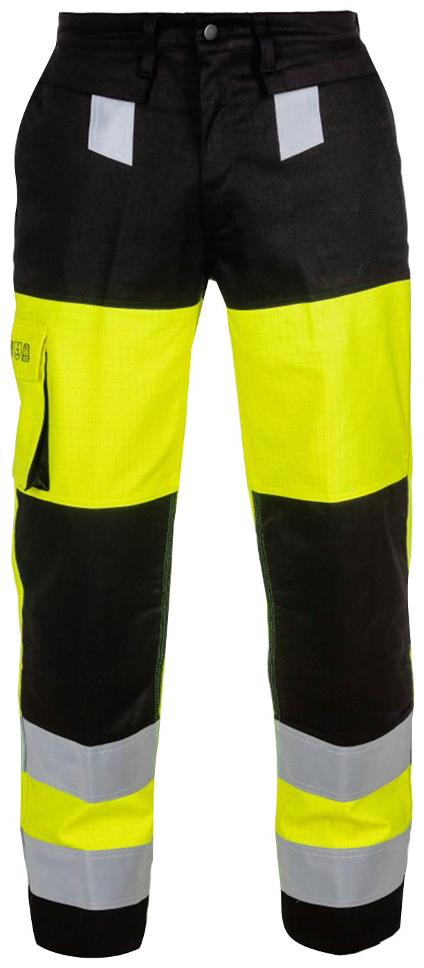 Palosuojatut antistaattiset ja näkyvät työhousut ammattilaiselle, joka työssään altistuu tulelle, kuumuudelle, kipinöille, valokaarille ja kemikaaliroiskeille. Käsitelty palosuoja-aineella.
