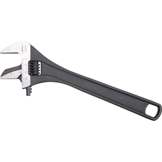 IREGA Jakoavain 99WR käännettävillä leuoilla. 10”. Kaksipuoleinen koneistettu. Hammastetun leuan ansiosta voidaan käyttää putkipihtinä. Tavallista suurempi avauma. Mitta-asteikko etupuolella millimetreinä, takapuolella tuumamitoitus.