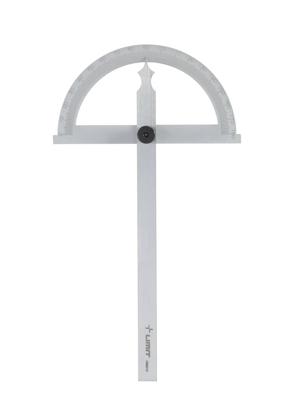 Terästä. Levyn asteitus 0-180°. Mattakromattu. Lukkoruuvi.