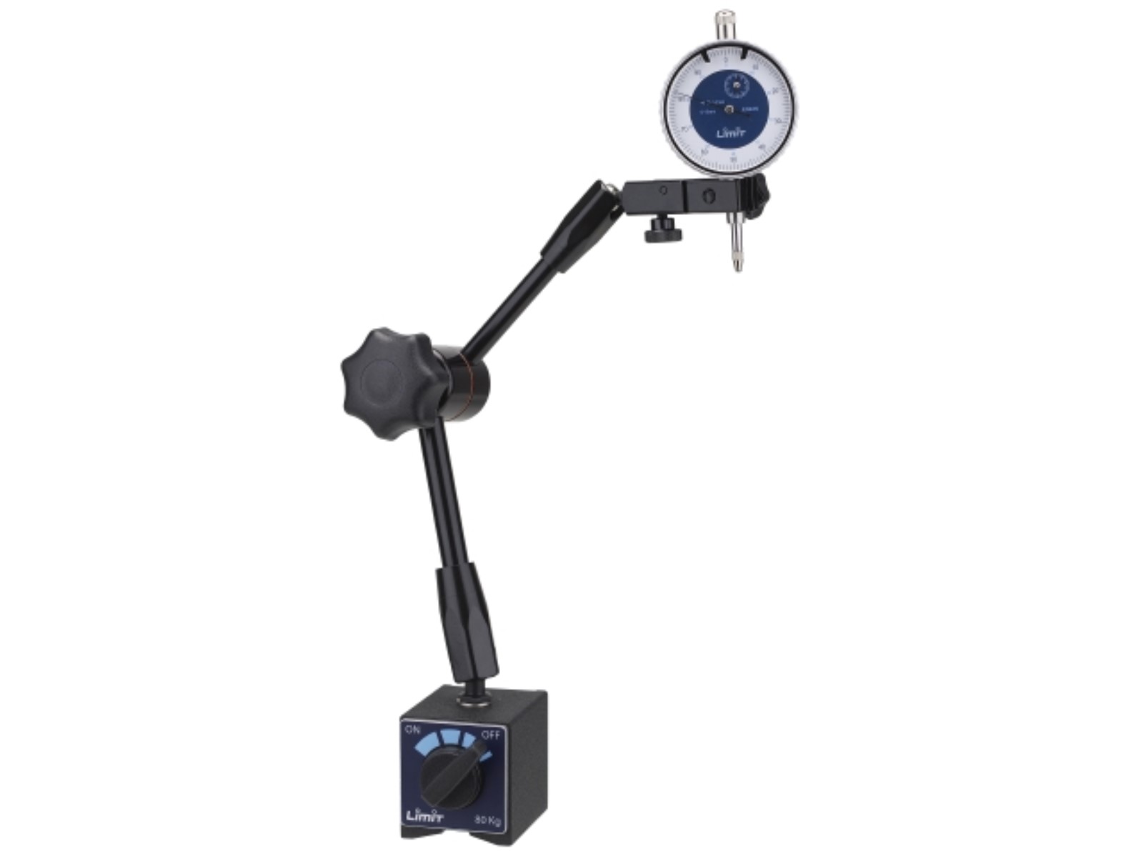 Magneettijalusta 11908-0208 ja mittakello 11911-0104.