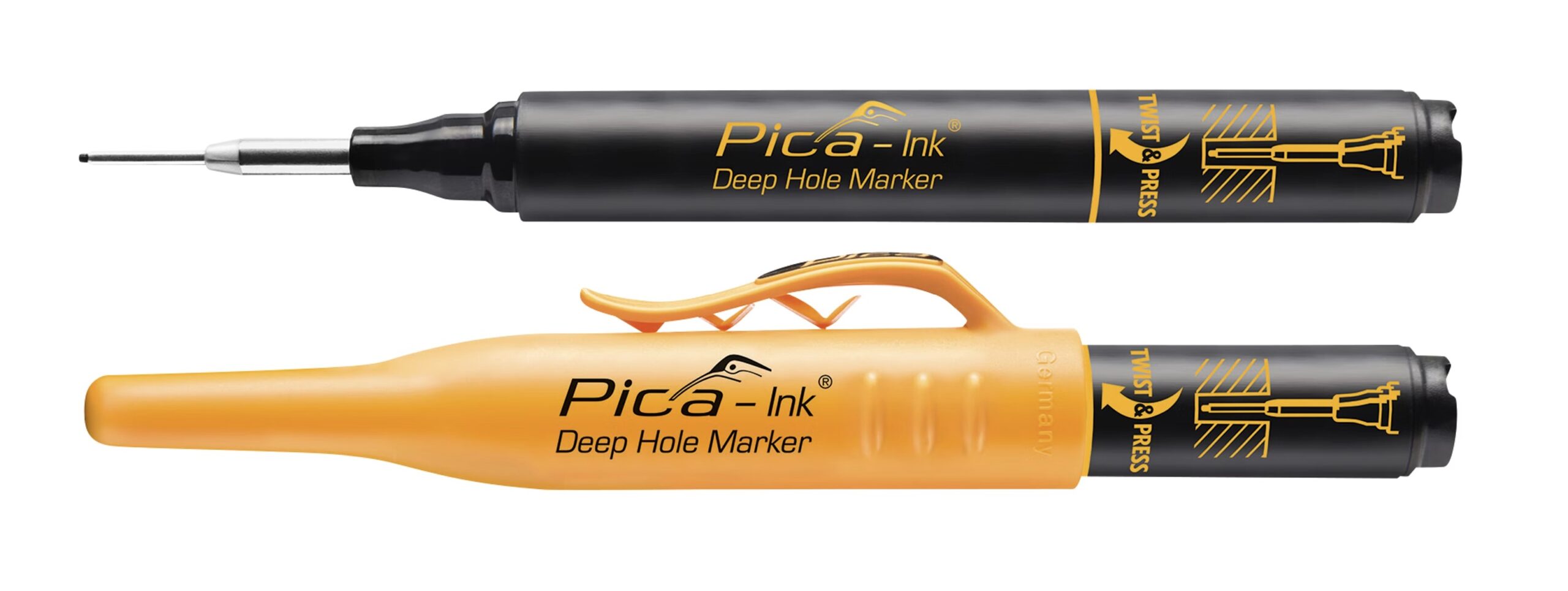 Pica Ink reikätussi. Kynässä ruostumattomasta teräksestä valmistettu säädettävä teleskooppivarsi, jonka avulla pystyy merkitsemään hankalissakin paikoissa. Toimii jopa 24 tuntia ilman korkkia kuivumatta. Yhdellä kädellä työskentely onnistuu kätevästi kääntökorkin ansiosta. Vedenkestävä muste, joka sopii miltei kaikenlaisten kuivien pintojen merkitsemiseen. Alkoholipohjainen muste on helposti poistettavissa kiiltävistä pinnoista alkoholin ja muiden käyttökelpoisten liuottimien avulla.