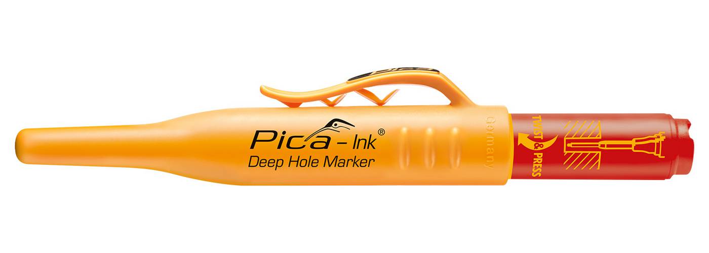 Tussikynä kapeiden ja syvien reikien merkintään. Teleskooppikärki ruostumatonta terästä. 1,5 mm kapean kärjen ansiosta kynä ulottuu helposti kannattimien läpi esim. ruuvinreikien merkitsemiseksi. Kynän runko on kokonaan muovia, joten se ei johda virtaa.