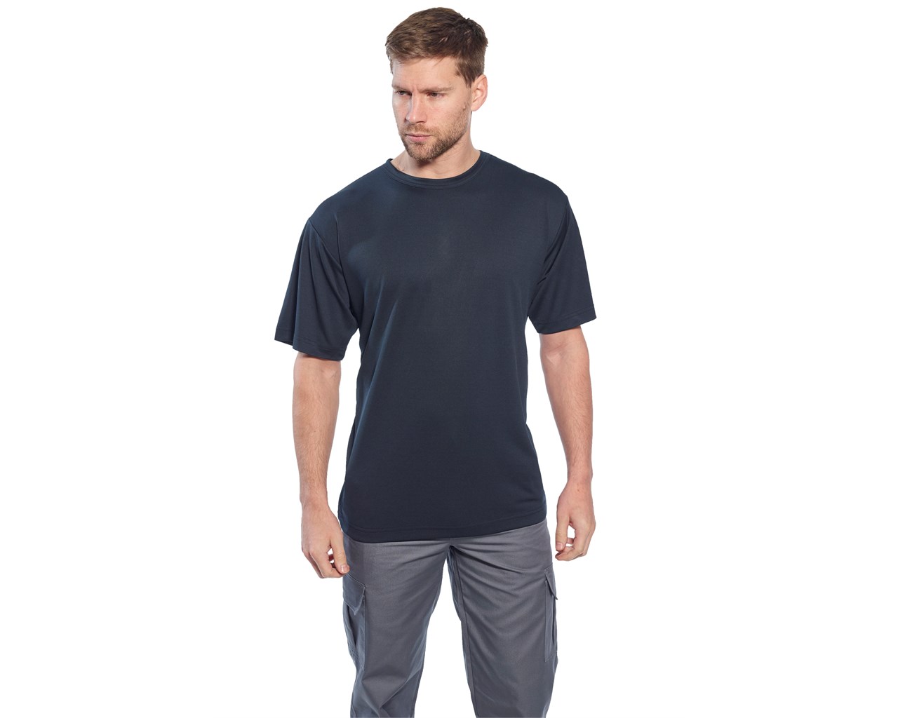 Tekninen T-paita pitää sinut viileänä, kuivana ja mukavana hengittävän polyesterikudoksensa ansiosta. Käsitelty kangas kuivuu nopeasti ja tahrat on helppo puhdistaa.