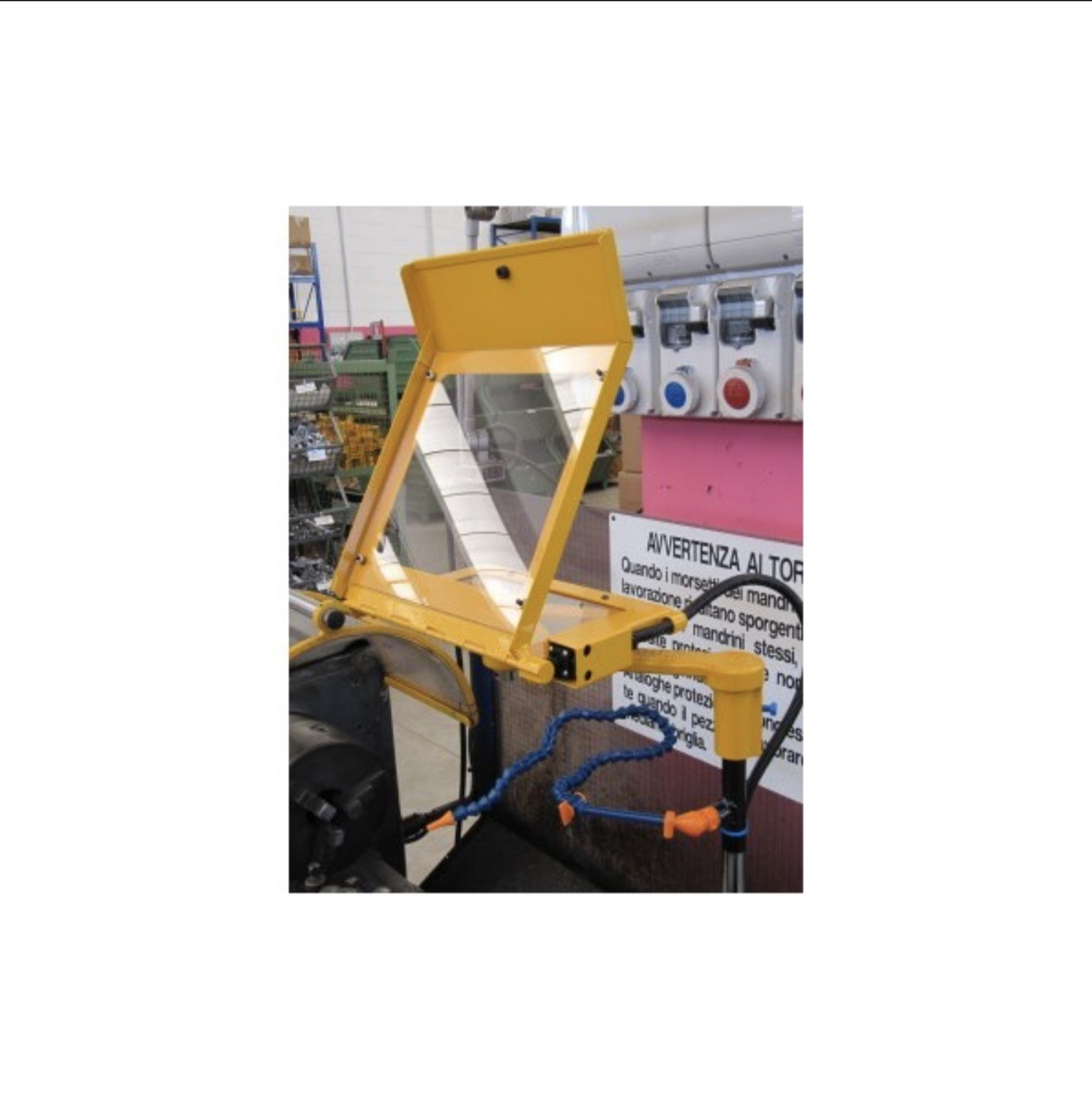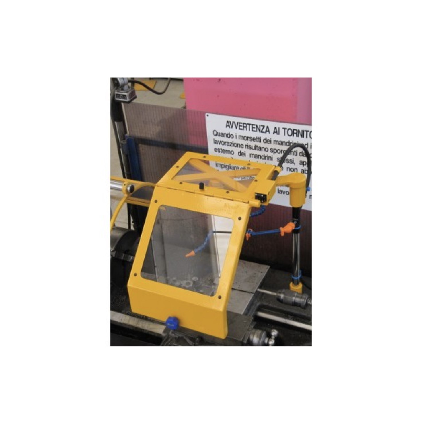 TC on kääntyvä lastunsuoja metallisorveille, missä teräskehys ja polykarbonaatti näkylevy. Suojaa käyttäjää lastuilta sekä jäähdytysnesteiltä.