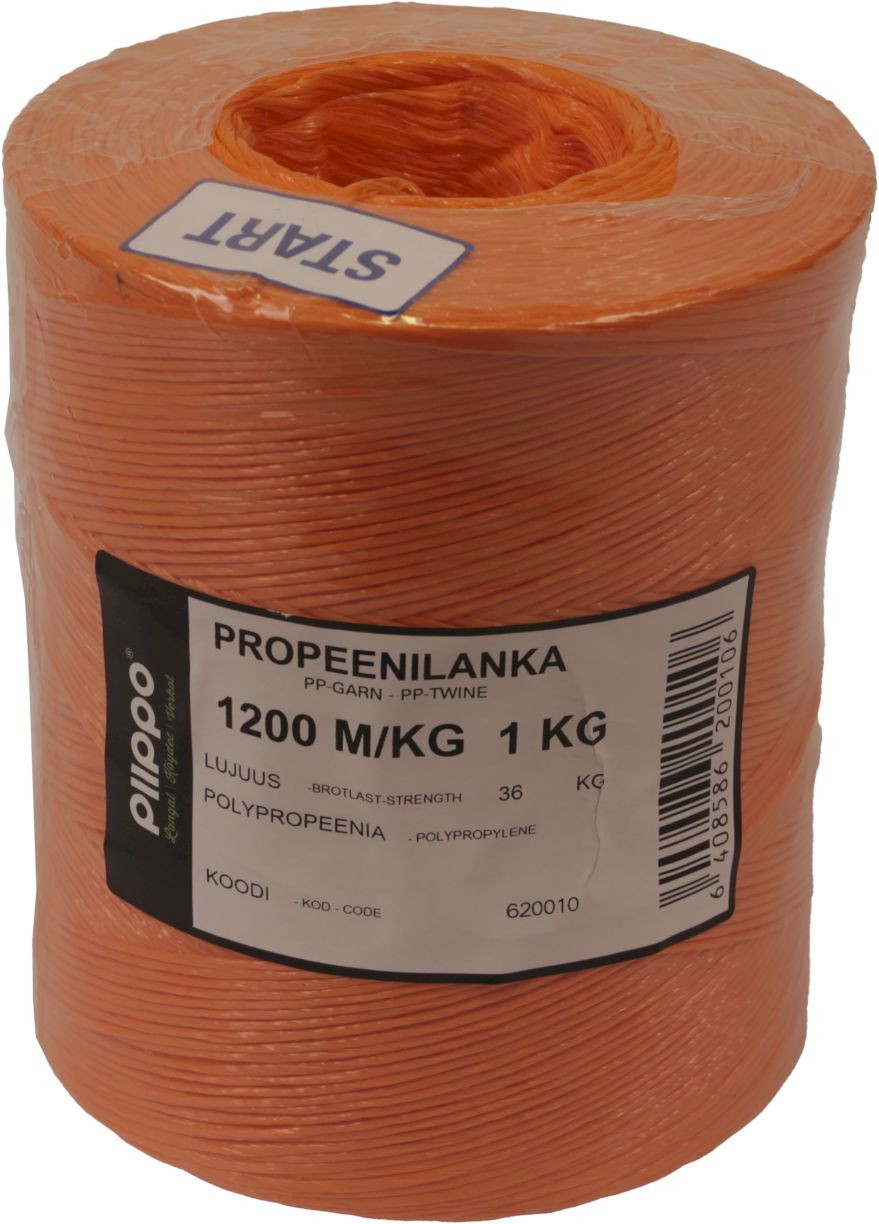 Langan numero 1200, ilmoittaa kuinka monta metriä on kilossa. Värit: valkoinen ja oranssi.