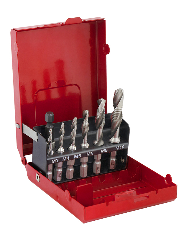 Sisältää koot M3, M4, M5, M6, M8 ja M10. Mukana myös kuusikulmainen magneettinen pidin. Soveltuu peltitöihin oikea-/vasenkätisille akkuporakoneille. Leikkaus onnistuu yhdellä kertaa ilman työkalun vaihtoa