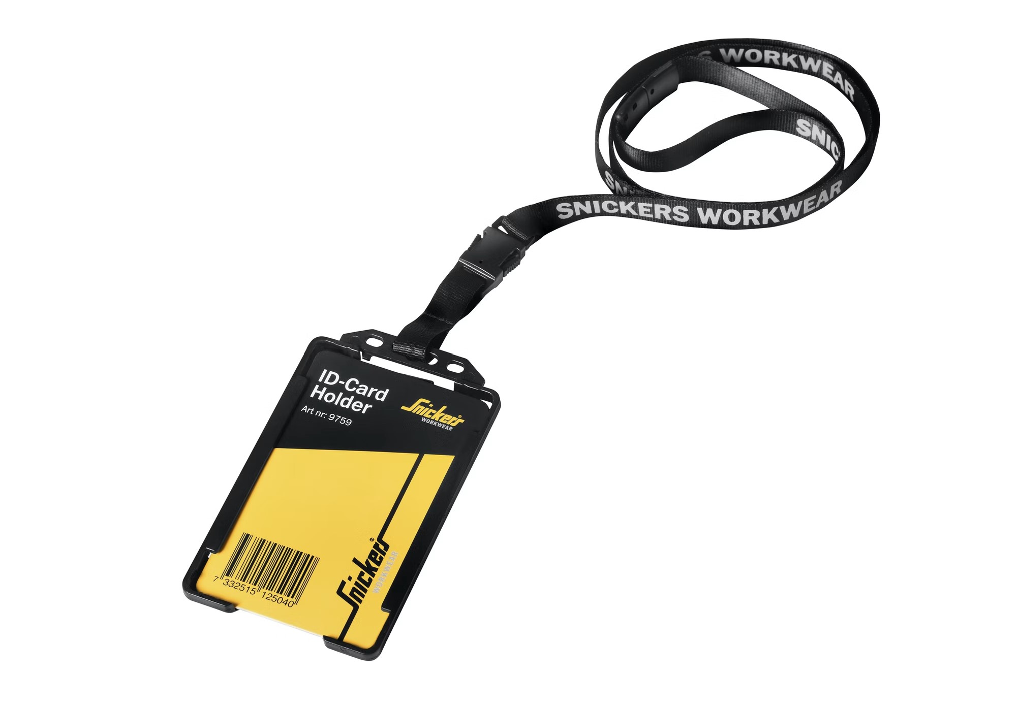 Henkilökortinpidike, jota voidaan pitää kaulan ympärillä tai kiinnitettynä työvaatteisiin. Kääntyvä liitin, jolla henkilökortin voi kiinnittää pysty- tai vaakasuunnassa. 100 % ABS-muovia. Polyesterinauha.