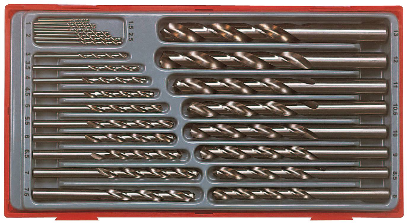Teng Tools Sarja sisältää 28 terää 1,0-13,0 mm. Kierukkakulma 28°. Kärkikulma 118°. Ristikärki takaa tarkemman kohdistuksen. HSS. Kiiltävä. Perusporanterä teräksen ja valuraudan poraamiseen.