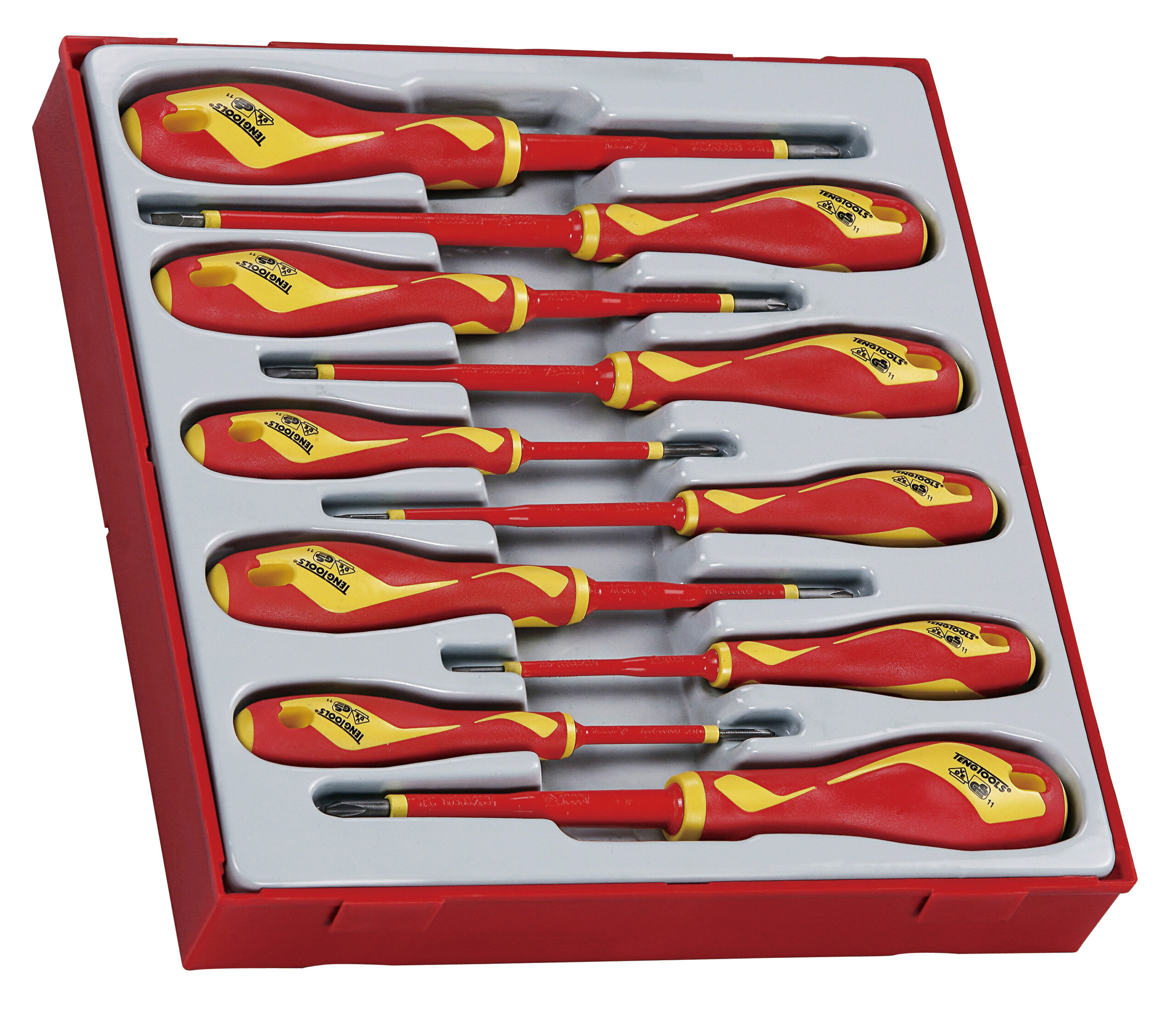 Teng Tools TTDV910N on 10-osainen ruuvitalttasarja, johon kuuluu 10 kpl 1000 V eristettyä ruuvitalttaa suoriin, Phillips- ja Pozidriv-uriin.
