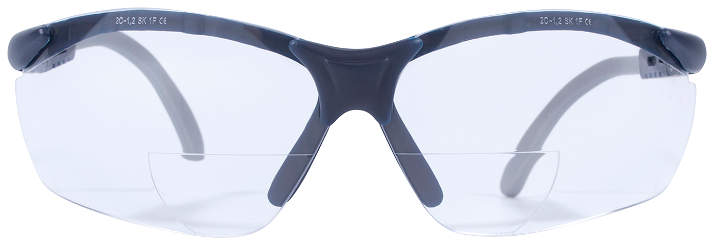 Suoja-/lukulasi neljällä eri voimakkuudella. Kirkas polykarbonaattilinssi. Säädettävät sangat ovat kovan ja pehmeän muovin seosta.Säädettävä linssien kulma. Kaksiosainen linssi, lukulasialue hiottu plusvoimakkuuksille +1,0/+1,5/+2,0/+2,5. Vastaa EN 166, luokka 1F sekä EN 170 vaatimuksia